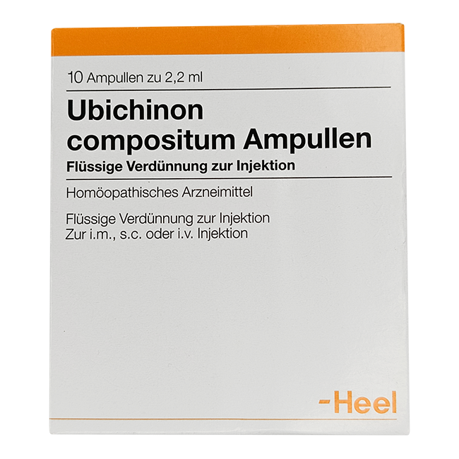 Ubichinon compositum Ampullen – комплексный инъекционный гомеопатический препарат фирмы Heel, предназначенный для применения по назначению врача как часть комплексной терапии состояний, при которых предполагается дисбаланс окислительно-восстановительных процессов и энергетического обмена.