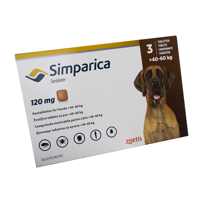 Симпарика для собак 120мг 40-60кг ГЕРМАНИЯ! табл. для пер. пр. N3