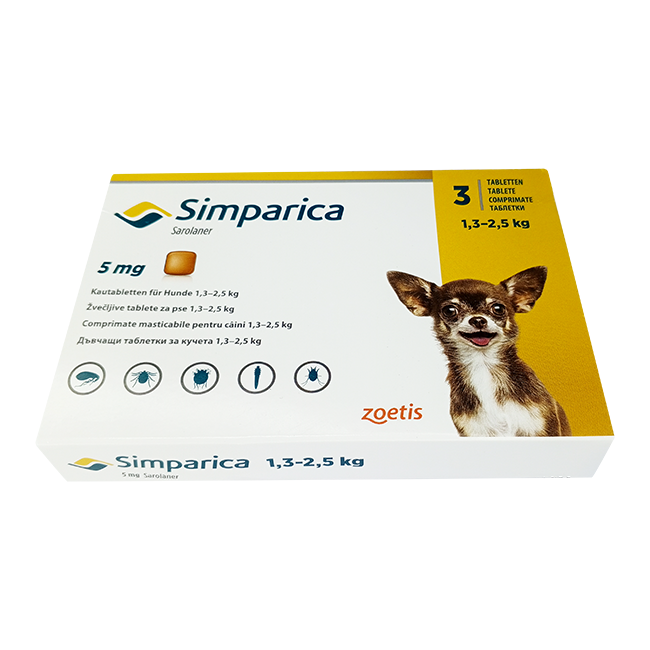 Симпарика для собак 5мг 1,3-2,5кг ГЕРМАНИЯ! табл. для пер. пр. N3